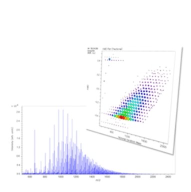 为了分析高分散度的聚合物,将 GPC 与高质量准确度 MALDI-TOFMS 相结合是有效的。 此过程在 Kendrick 剩余质量 (RKM) 图中显示多个馏分的质谱,以直观地呈现组成分布。